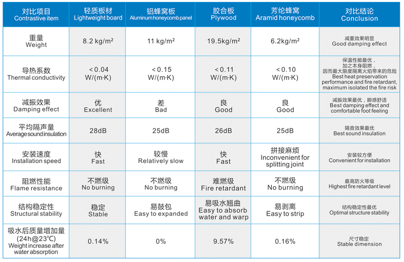 輕質(zhì)板材與常見(jiàn)材料的對(duì)比: